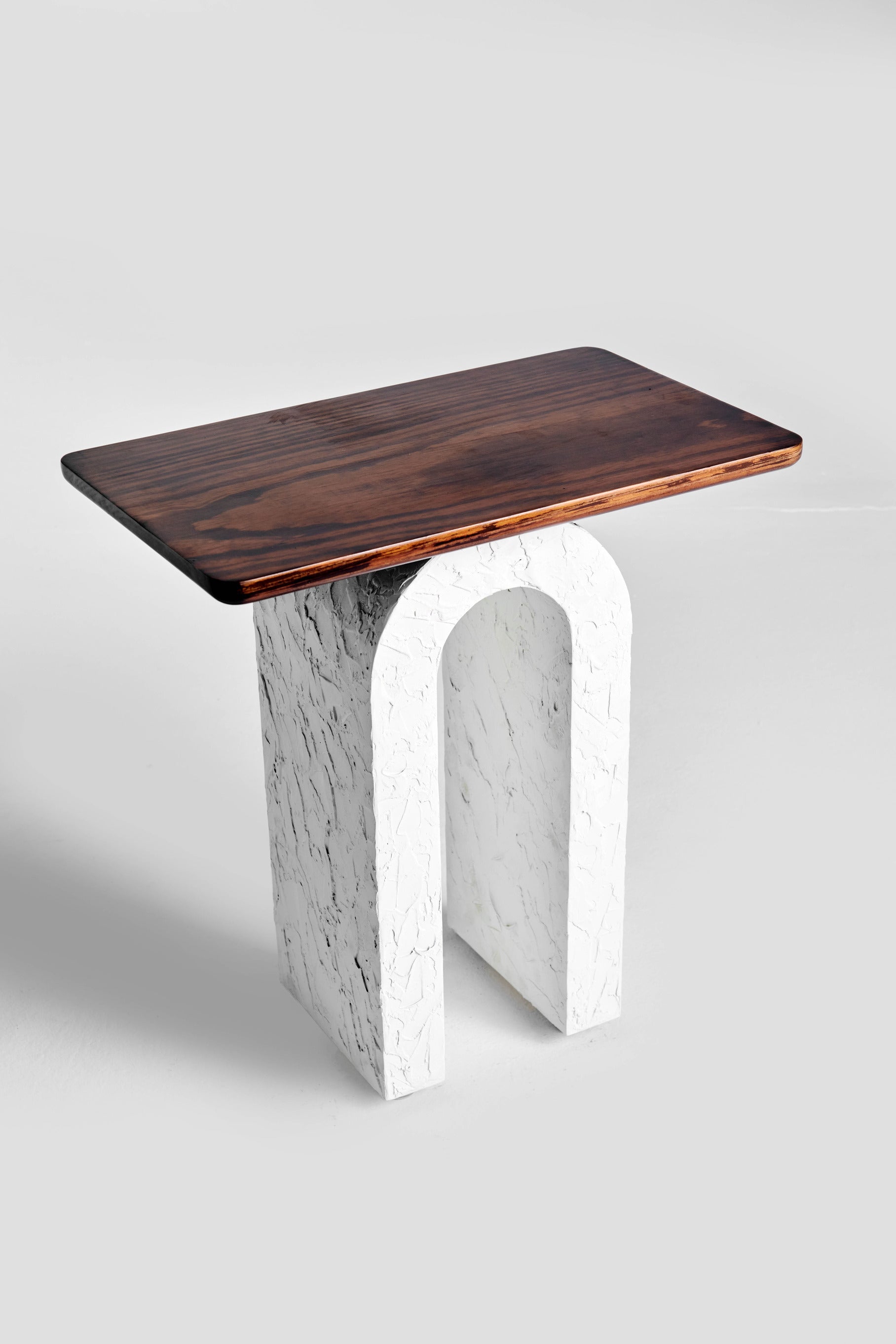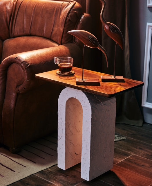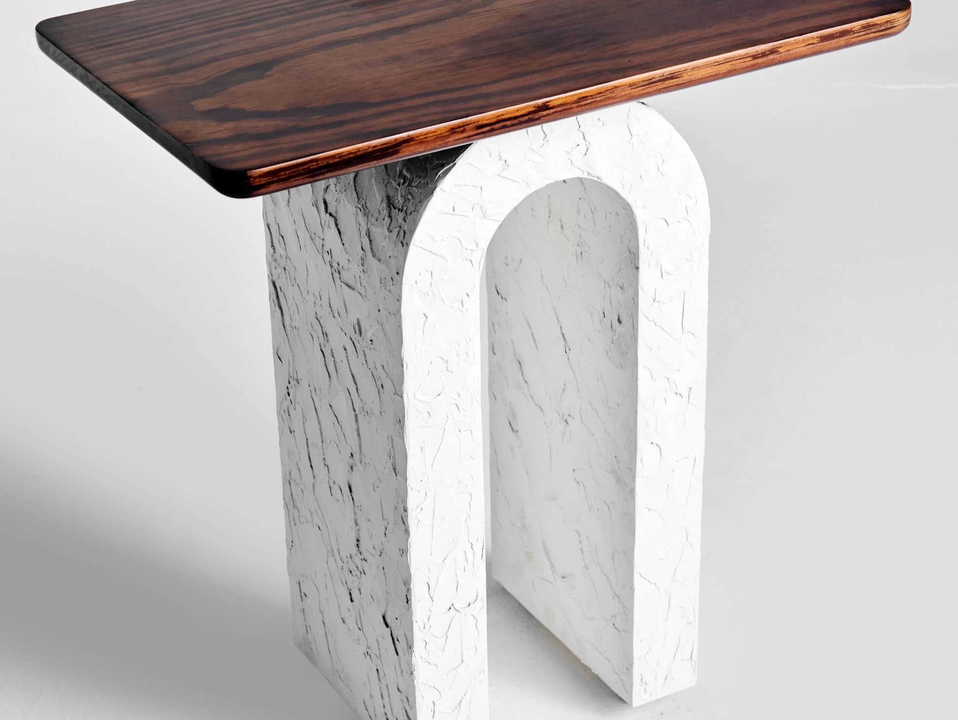 • Description: A surface of massive pitch pine wood side table that beautifully merges contemporary design with natural charm. This striking piece features a uniquely shaped wooden base, elegantly crafted with an arch that showcases a sophisticated concrete effect. This innovative finish adds an industrial flair to your decor, making Arch Pine a standout addition to any space.