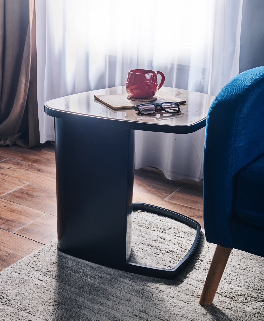 The table's striking black curvy metal frame is not only a visual delight but also engineered for durability. Finished with an electrostatic matte coating, it resists wear and tear, ensuring that the L-Shape Curve remains a centerpiece of elegance in your home for years to come.